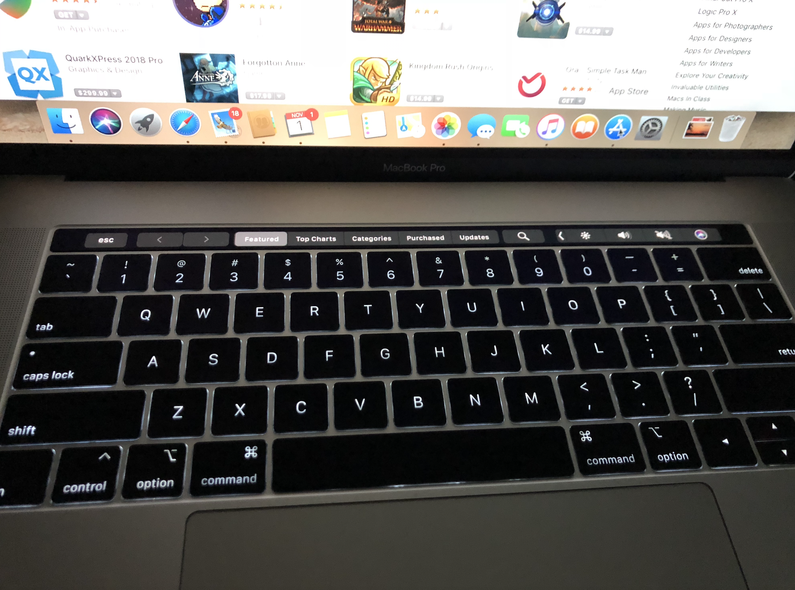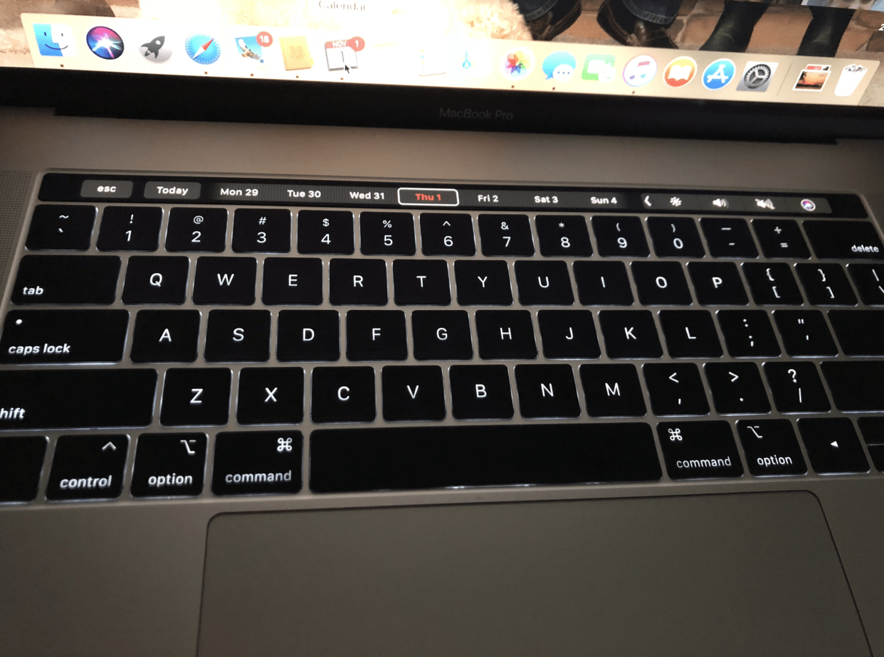 The touch bar is a snazzy new feature. It changes depending on what app is being accessed, and gives you a short-cut for functions: