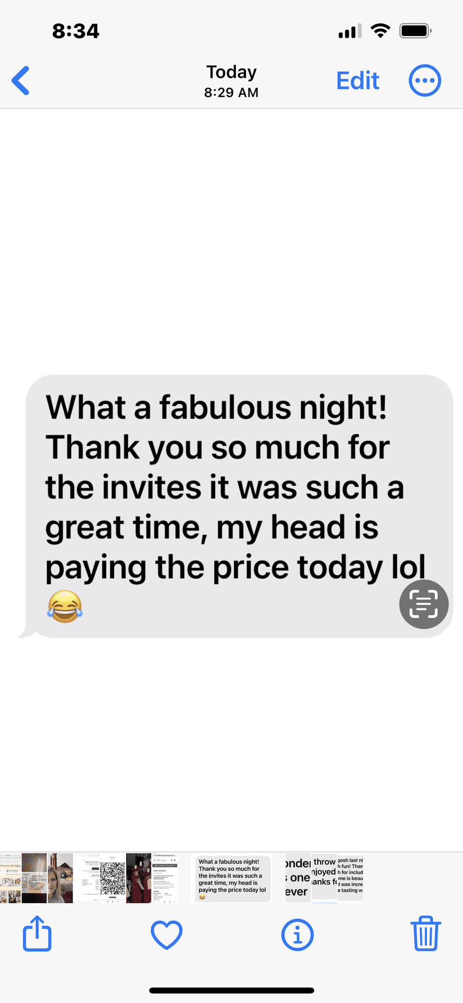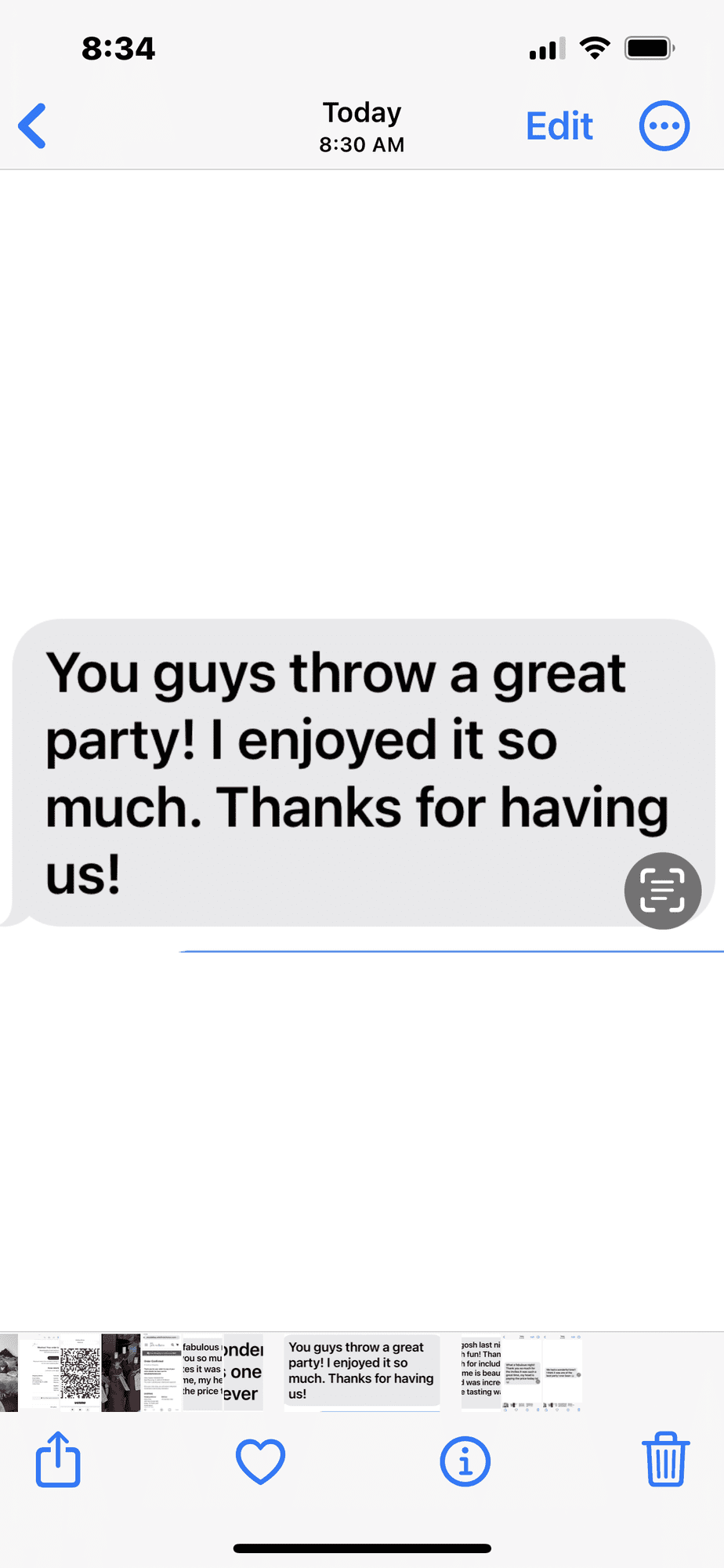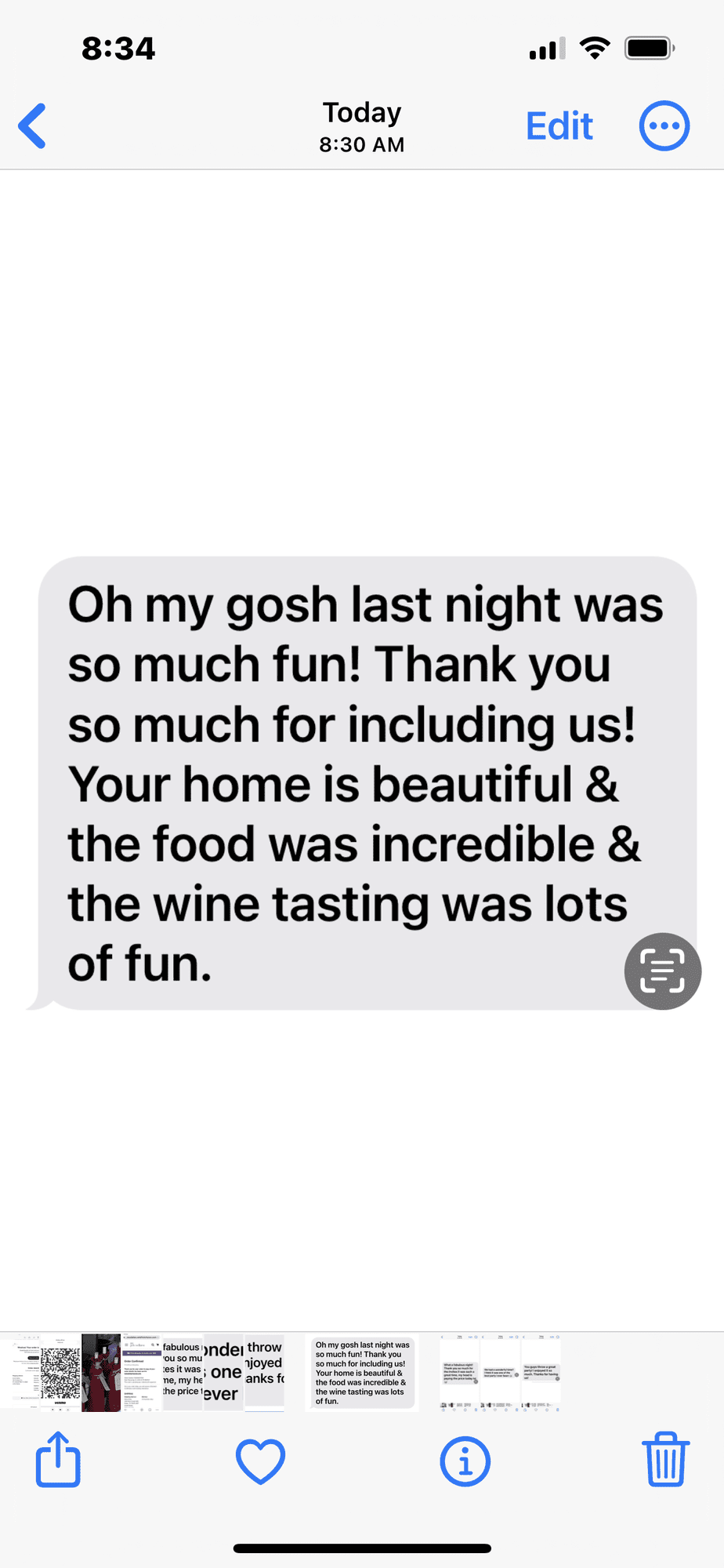 It was fun, a great way to socialize and get to know others, plus an unique opportunity to learn about wine! So fun to receive texts like these the next day!