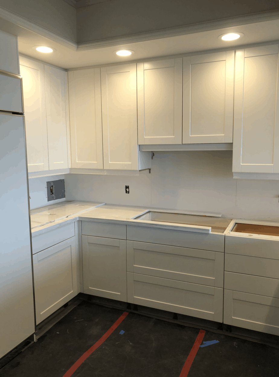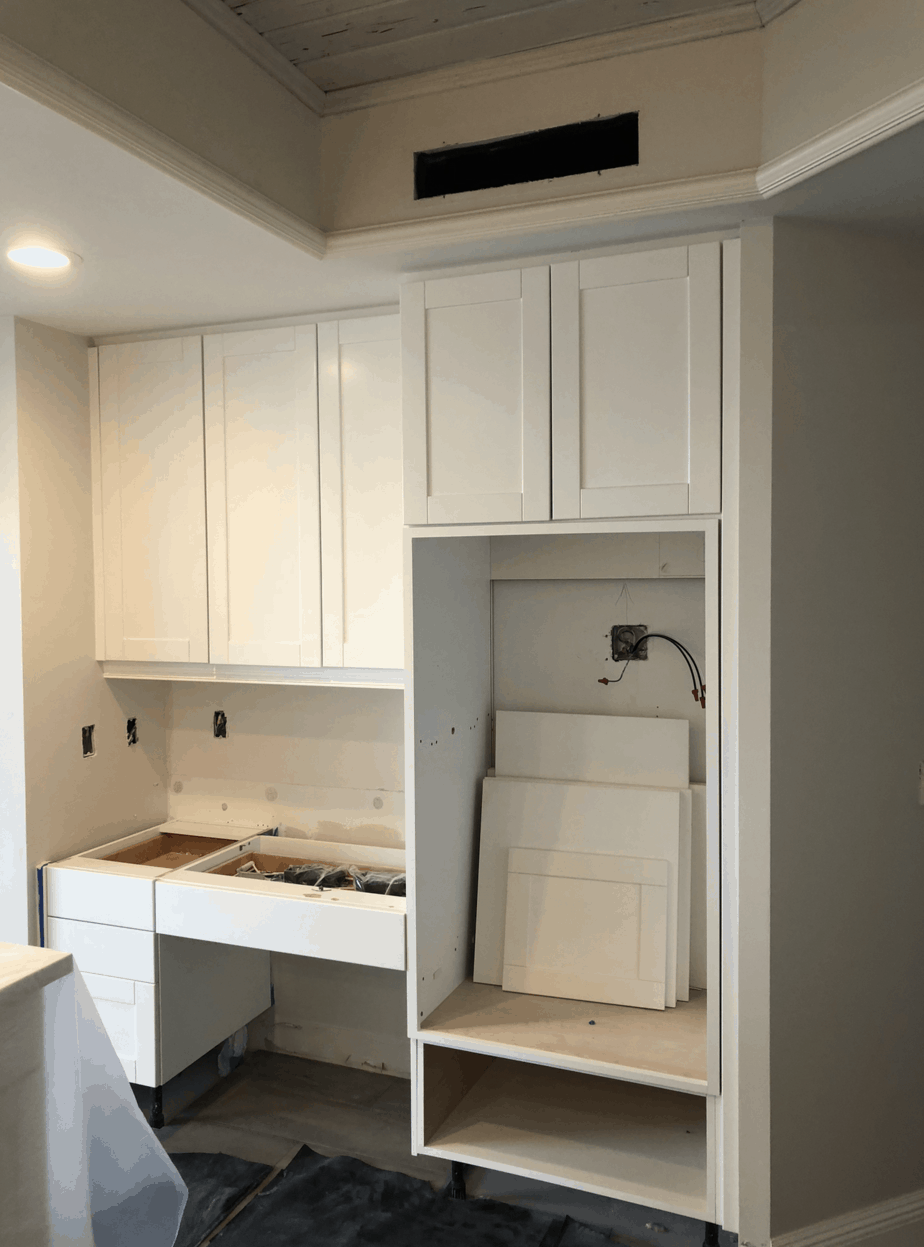 We wanted white cabinets, and  we chose the Sherwin Williams color Alabaster.