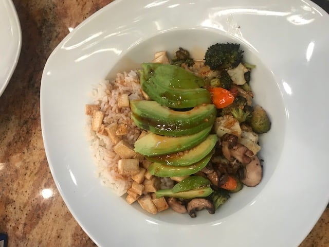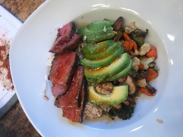 The fresh, simple ingredients made it relatively easy to come up with something similar. It included roasted vegetables, rice, grilled chicken, avocado and teriyaki sauce.