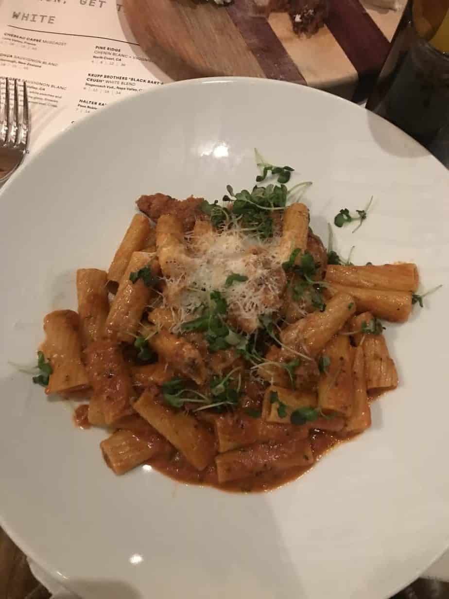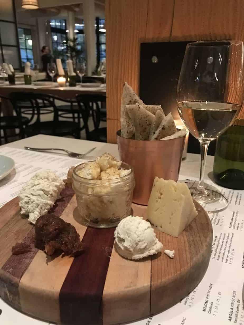 We loved the cheese board. We’ve ordered it twice and adjusted it the second time to include the items we love, leaving out the items we weren’t craving, like olives and nuts. It was a cheese extravaganza! Our entrees were terrific, too, from the vegetarian sausage rigatoni to the salmon. Plus 60 Vines is in hip Uptown. Try it!