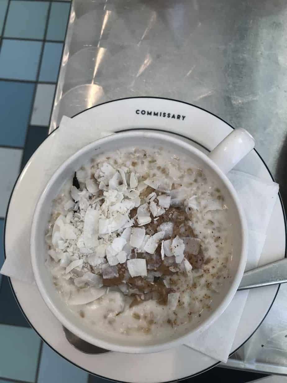 Downtown Dallas boasts many great breakfast/brunch options, one of which is Commissary. Located on Main Street, it offers so many homemade options, created daily in house. Options include breads, pastries, desserts and more. We opted for a few basics, including oatmeal with a twist– coconut and sautéed bananas, avocado toast with a spicy twist and a smoothie-granola dish. Clean, quick and yummy, it’s worth a stop!