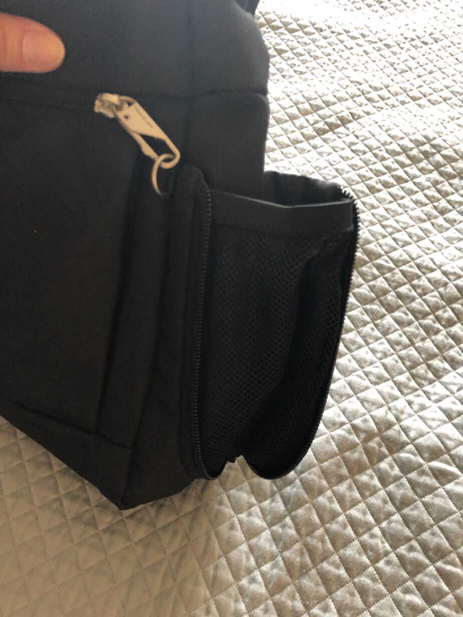 This may be my favorite part. Each side of the handbag has a pocket that unzips to hold an umbrella or water bottle. You don’t see the pocket until you unzip it.