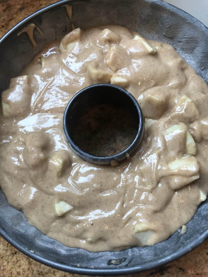 Batter is usually thick, but still pourable if that’s a word. This batter was super thick. I had to spoon it into the bundt pan.