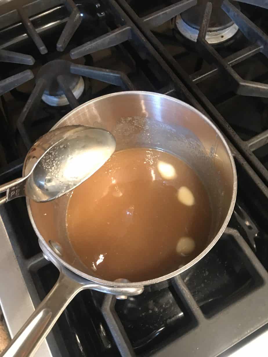 What goes better with an apple dessert than a wonderful caramel sauce? This one is easy to make. I doubled the recipe and reserved half for drizzling over the cake (and side of vanilla ice cream).