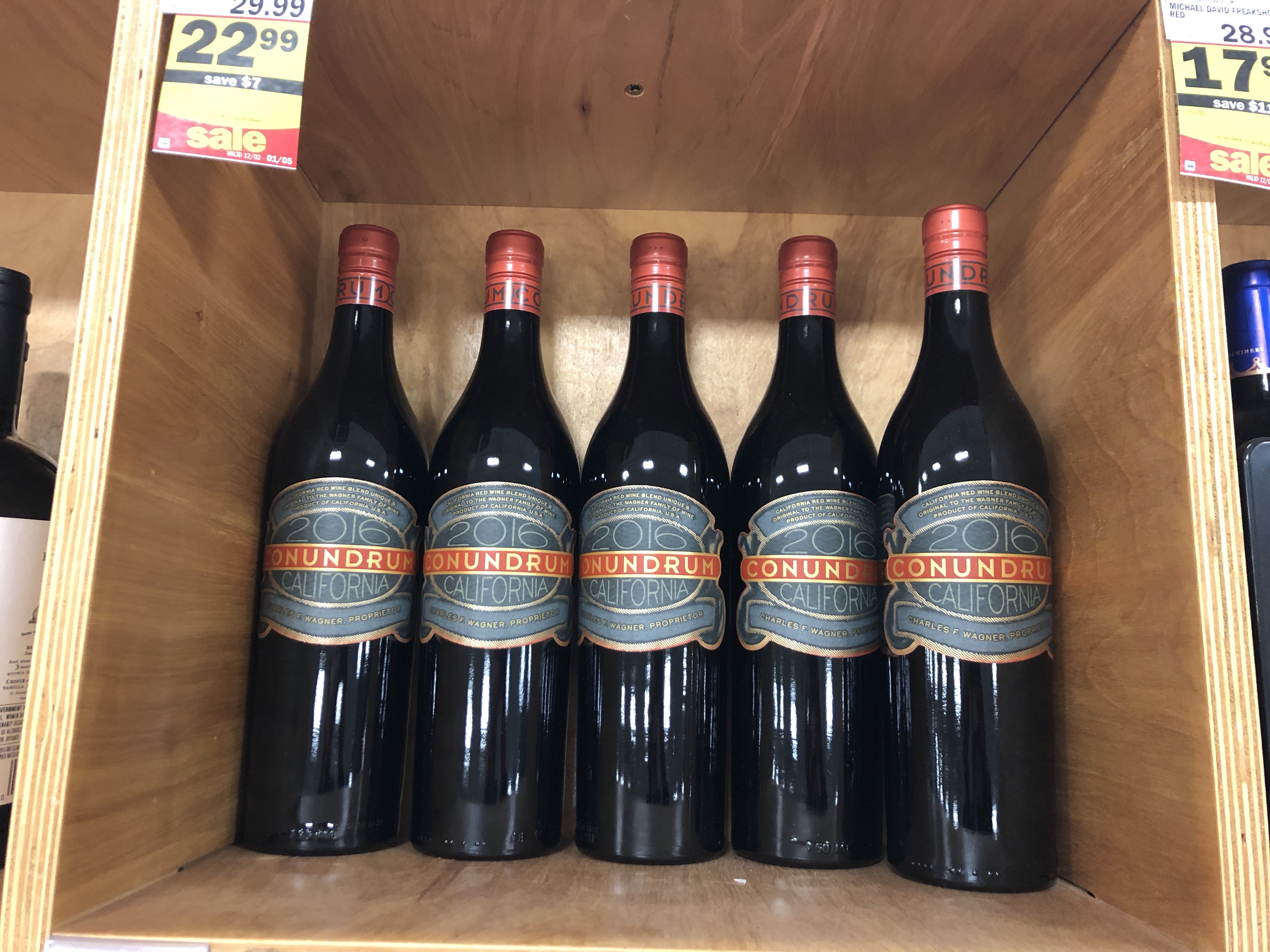 Conundrum, from the legendary Caymus family, is a wonderful blend of zinfandel, petite sirah and cabernet sauvignon. Taken is a blend of cabernet cauvignon and merlot. The Prisoner, which is very popular in our area, is a blend of about 5 varietals.